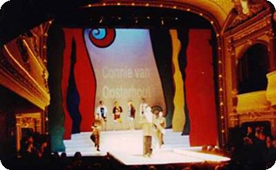 Bühnenbild für eine Aufführung in der Bonbonieré in Maastricht. Die hängenden beleuchteten Elemente konnten von den Darstellern bewegt werden.